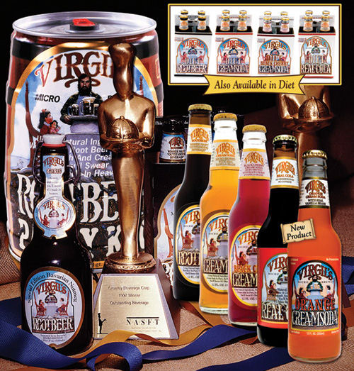 Virgil's Root Beer, Cream Soda, Black Cherry Cream Soda, Orange Cream Soda and Real Cola Virgil's is a gourmet root beer. We're what Ben and Jerry's is to ice cream, what Dom Perignon is to champagne. We're a micro-brewed root beer made with all-natural ingredients - we use herbs imported from around the world and unbleached pure cane sugar. Virgil's Microbrewed Root Beer contains these key all-natural ingredients: * carbonated water * unbleached cane sugar Along with these natural herbs and spices (including point of origin): * anise from Spain * licorice from France * vanilla (bourbon) from Madagascar * cinnamon from Ceylon * clove from Indonesia * wintergreen from China * sweet birch from the southern US * molasses from the US * nutmeg from Indonesia * pimento berry oil from Jamaica * balsam oil from Peru * cassia oil from China Some root beers claim to be "cold-brewed". This is merely another term for the filtering process that yields common soda. Even so-called premium root beers like Stewarts, IBC and Weinhard's are not hand crafted brews like Virgil's. Only Virgil's Microbrewed Root Beer is truly "brewed". Made Naturally for the Root Beer, Cream Soda, BLACK CHERRY CREAM SODA, AND REAL COLA Connoisseur, Virgil's is one man¡¦s passion to create the finest soft drinks ever produced. After retiring from a very successful career in the beverage industry, Ed Crowley set out to research what it would take to make the finest soft drink ever. As a result of his research Ed developed the recipe for Virgil's Root Beer. Recipe in hand, his search for the finest ingredients took him around the world. The results are an award winning soft drink made naturally without caffeine or preservatives. Virgil's Cream Soda is a classic cream soda recipe made naturally using the finest vanilla beans and unrefined cane sugar. For years, we have been making Virgil's Root Beer, a three-time Outstanding Beverage Award winner of the National Association of the Specialty Food Trade (the national organization for the gourmet food trade). We decided to make a cream soda that would rival the super premium quality of our root beer. Black Cherry Award Virgil's Black Cherry Cream Soda is a classic cream soda recipe made naturally using the finest cherry flavor, vanilla beans and unrefined cane sugar. We searched the world for the perfect black cherry cream taste. We hope you will find this to be the best black cherry cream soda you have ever tasted. Virgil's Real Cola is a classic cola recipe made naturally using the finest ingredients and unbleached cane sugar. We decided to make a cola that would rival the super premium quality of our root beer made naturally without caffeine or preservatives. NEW PRODUCT! Virgil's Orange Cream Soda is a twist on a classic cream soda recipe made naturally using the finest vanilla beans, natural orange flavor and unrefined cane sugar. Now we have a orange cream soda that has been crafted to rival the super premium quality of our root beer and cream soda. We hope you love our products as much as we love making them! |